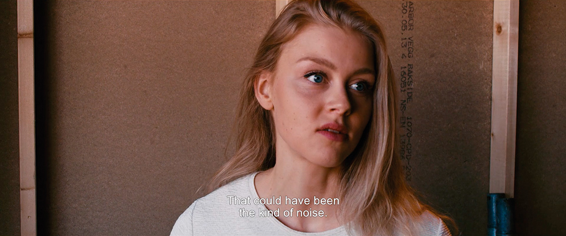 Then at TC 3:29 the protagonist Kaja enters the frame and look direct at the audience thus breaking the fourth wall.