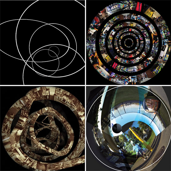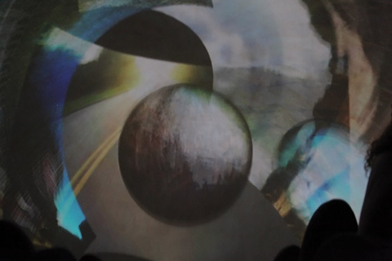 Tal projeto trata sobre a questão dos métodos de criação e pesquisa colaborativa, que integram artes visuais, música e mídias emergentes, na geração e interação entre imagens e sons. Incentiva-se a experimentação de novos métodos de produção e exibição de imagens, problematizando as tecnologias emergentes e os formatos das produções audiovisuais, em projeções fulldome4 nas cúpulas de planetários, telas panorâmicas e vídeo mapping de fachadas arquitetônicas. Questionamos assim, os espaços de arte contemporânea e os contornos expositivos.