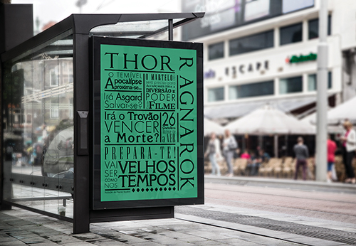 Nesse sentido, selecionou-se um dos seis cartazes, o filme Thor - Ragnarok, e a partir deste iniciou-se um ciclo de experiências tendo sido testados variados cartazes de forma a aproximar-se cada vez mais das criações mais contemporâneas, de onde o trabalho tipográfico da designer Paula Scher, entre outros, serviu de inspiração.