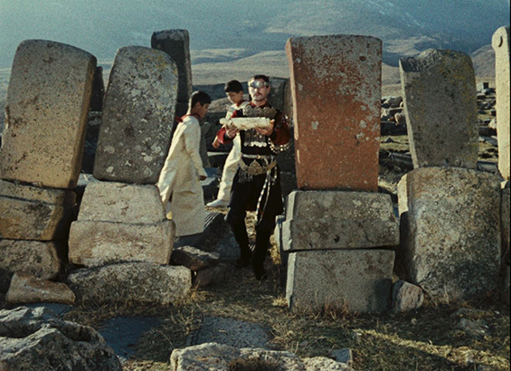 It is hardly possible to discuss Soviet Armenian filmmaker Sergei Parajanov’s The Colour of Pomegranates («Նռան Գույնը», 1969) outside the cultural context. The film follows the Armenian ashugh (troubadour poet) Sayat-Nova, revealing his life visually and poetically. Through a chaptered narrative (Childhood, Youth, Prince’s Court, The Monastery, The Dream, Old Age, The Angel of Death and Death), Parajanov presents multi-faceted pieces of contemporary life and takes the viewer into the character’s desires and dreams. The visual narrative is accompanied by music, sound and singing, but there is little dialogue in the film.