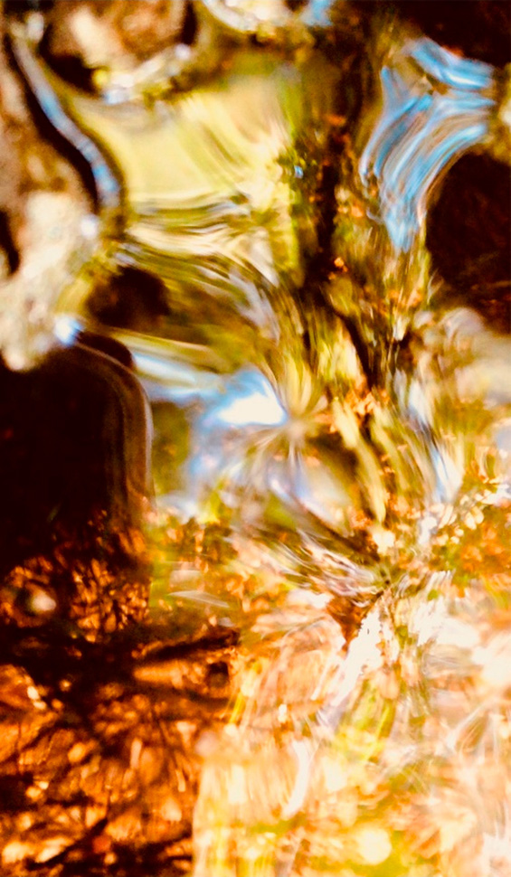 When I stand knee-high in the shallows with my camera lens intently following ripples and light, I become immersed by the sensation of cold water rushing around my legs and with my face close to the surface, the noise caused by water mixing with air becomes a steady roar.
