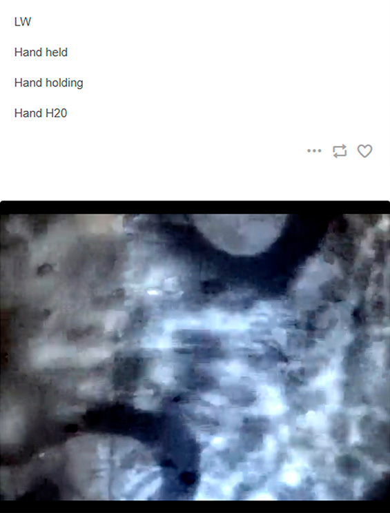 This process began with each participant presenting a still or moving image derived from Water Screening (2019). Each image had a comment by the person posting in the form of notes and thoughts about the process focusing on the particular image. Having posted the researcher then waited for a response from the other researcher. This waiting became just as much a part of the process in that it generated both reconsideration of the post and expectation and anticipation of the response.