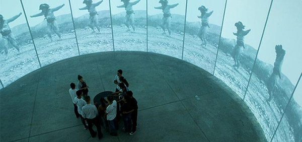 Como um último exemplo, os dispositivos “Visorama”, utilizado na instalação “Figuras na paisagem” (2010), ou o experimento “Circuladô” (2010-2014), ambos de André Parente, são fundamentais. No primeiro, André recria a experiência do cinetoscópio de Edison, criando um aparato óptico que traz imagens panorâmicas, mas ao mesmo tempo mostra o que o espectador vê para o espaço expositivo. No segundo, coloca o espectador para rodar um dispositivo e influenciar no rodopio das imagens dispostas em um zootrópio gigante. O usuário torna-se, para voltarmos a McLuhan, mensagem de um experimento.