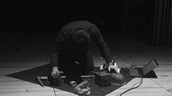 Figura 3 - André Araújo, O Mineiro, 2020, sound design performance, auditório do CCCI, Universidade de Aveiro