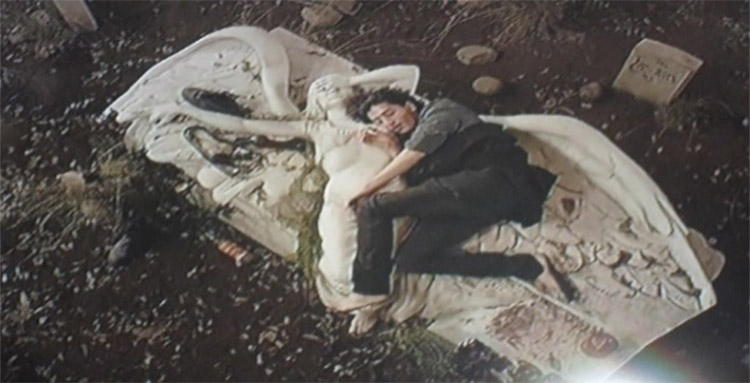 Figura 3: Gabriel dorme em cima de um túmulo no cemitério.