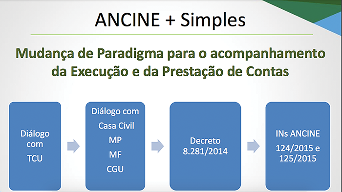 Em apresentação publicada na Internet, a ANCINE explicava o processo de negociação política para definição do novo projeto que pretendia regularizar o passivo de prestação de contas.