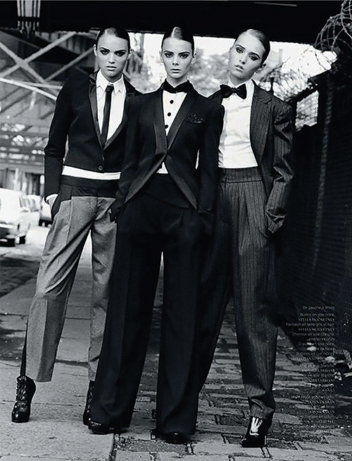 Historically women used cross-dressing in order to achieve a social goal, as experiencing the freedom and safety, participating in activities forbidden to females. “George Sand deliberately adopted male clothing in order to engage fully in Parisian literary society because it allowed her to behave as a man, with all the associated freedoms of masculinity.” (Suthrell 2004, 8); or even at times not with an aim to disguise themselves but to feel the comfort out of the tight waist, narrow skirt dresses by dressing the masculine power. Suthrell describes transvestism as a more general word than cross-dressing. It includes not only dressing as the opposite gender (cross-dressing) but also as their own gender while seeking the purpose of creating a new identity. The desired identity to get permission to go through doors they could not pass without the new dressing style. Dress here makes a new character and requires relevant traits to work.